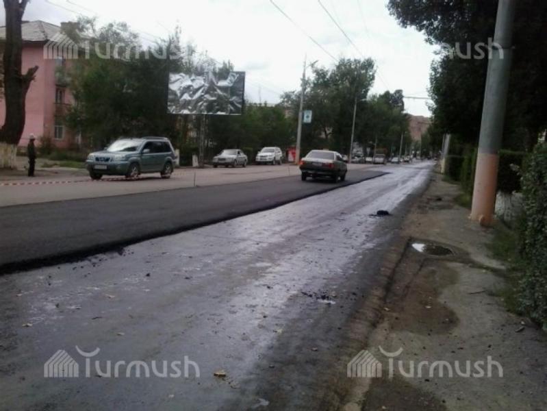 Нарын шаарындагы борбордук көчөнү асфальттоо иштери 70%га аяктады (фото)