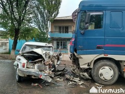 Фото - Нарында жүк ташуучу унаага урунган «Волга» талкаланды