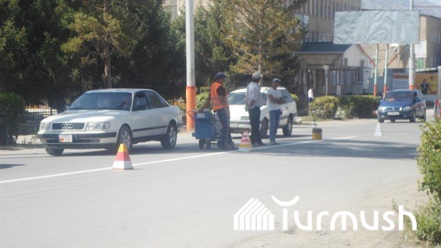 В городе Нарын начали обновлять дорожные разметки на центральной улице (фото)