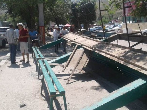 В городе Нарын демонтируют старые автобусные остановки (фото)