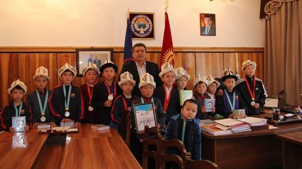 Мэр города Нарын Э.Алымкулов встретился с юными хоккеистами, завоевавшими серебро и бронзу на турнире в Бишкеке (фото)