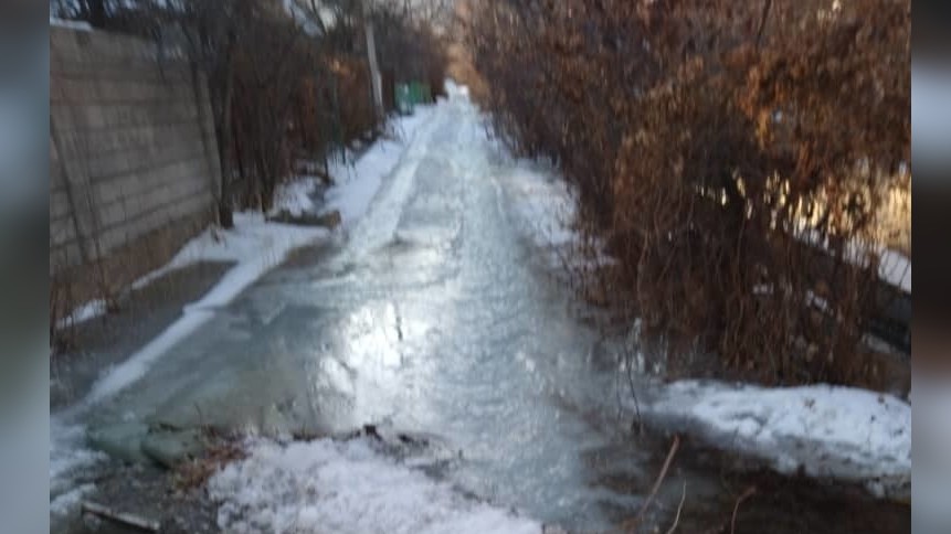 В городе Нарын лед заблокировал целую улицу
