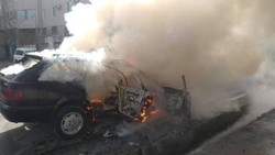 В городе Нарын загорелась машина вдоль дороги
